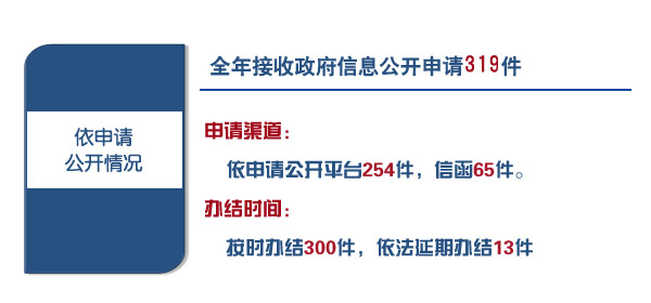 中国保监会进一步优化政府信息依申请公开渠道,完善办理机制,提高办理效率。2016年全年,累计接收政府信息公开申请319件。从申请渠道看,通过依申请公开平台收到254件,通过信函收到65件。从办结时间来看,按时办结300件,依法延期办结13件。
